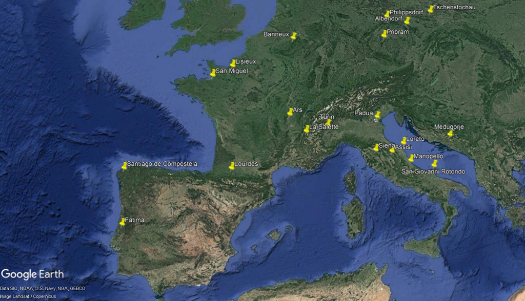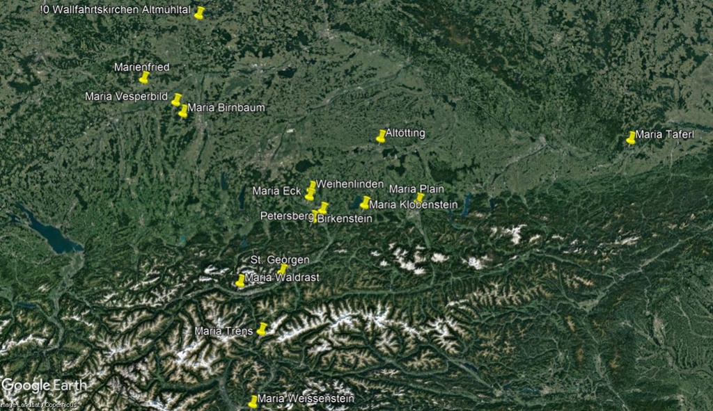 Folgende Übersichtskarten zeigen die Wallfahrtsorte, die ich bislang mit dem Motorrad besucht habe.